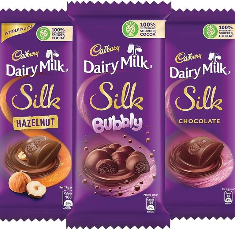 Cadbury Dairy Milk is known for its smooth, creamy texture and sweet flavor. It remains one of the most loved chocolates in India. Cadbury Silk provides a softer and richer chocolate experience, making it popular among premium chocolate lovers.