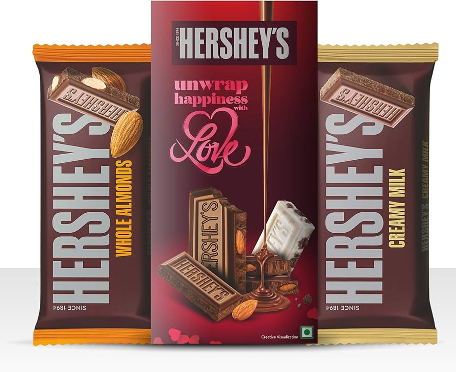 Hershey’s products come in recognizable packaging, often featuring the brand’s classic brown design. The packaging is designed to protect the chocolate and maintain freshness.